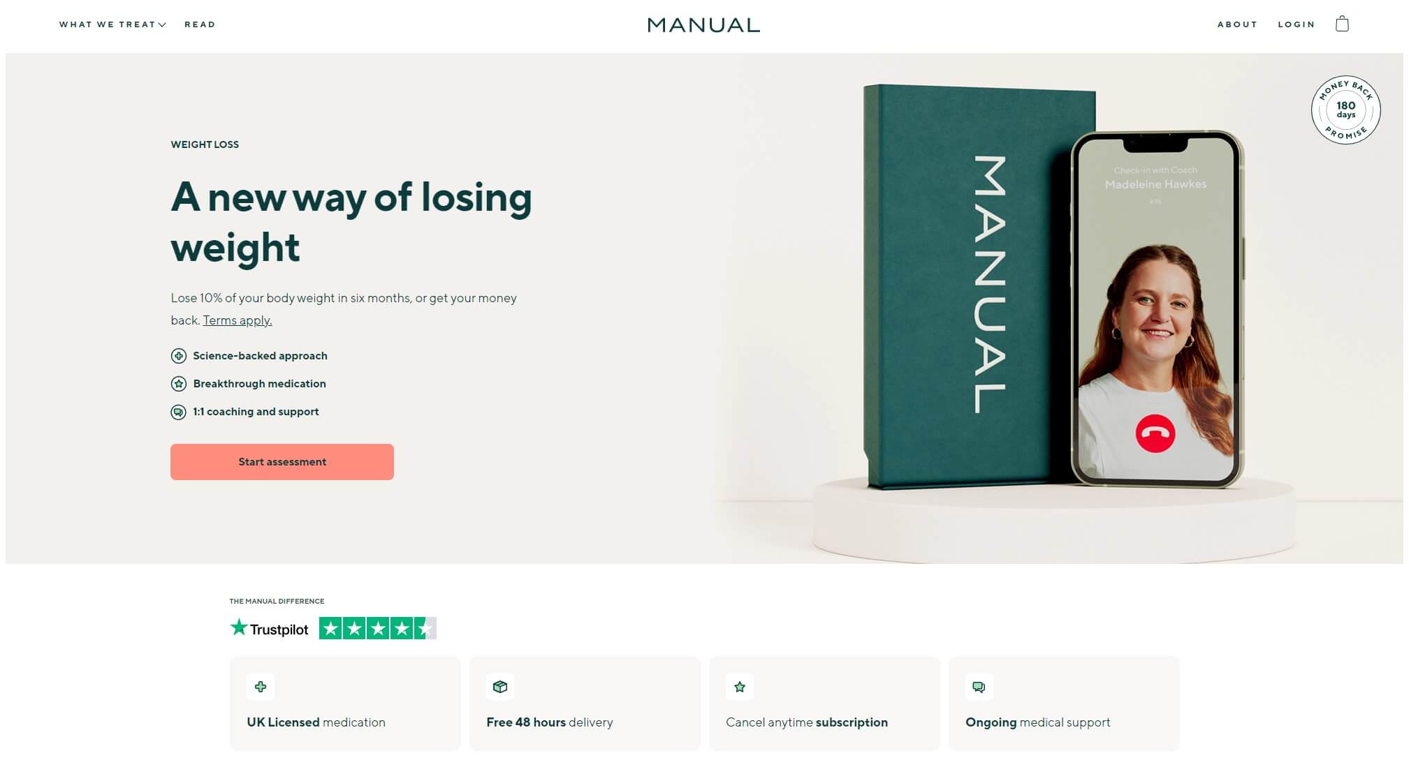 Landing Page for Manual - a Men's Healthcare Startup in London, UK.